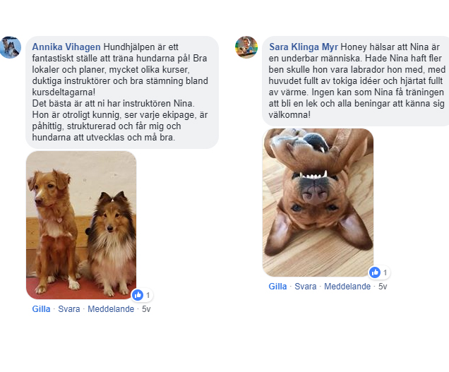 Vi har byggt upp en inspirerande mötesplats som sätter hundägaren och hunden i fokus. Detta görs genom kurser, enskild träning, föreläsningar, öppen träning och promenader, erfarenhetsutbyte och utbildning av assistanshundar. Läs gärna några av våra fantastiskt fina omdömen på bilderna nedan!